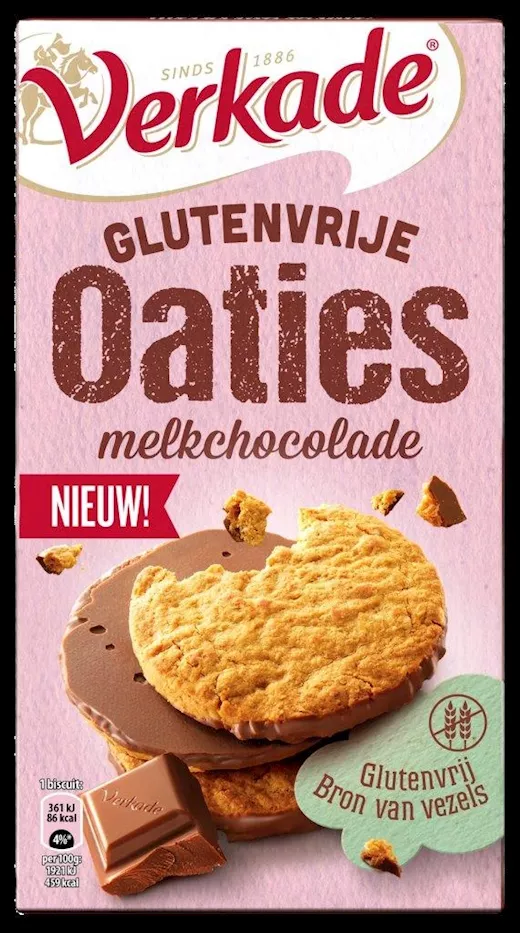Verkade Glutenvrije Oaties Melkchocolade zijn heerlijke koekjes vol knapperige havervlokken. En dat is niet alles… de koekjes zijn ook nog eens glutenvrij. Ze zijn lekker krokant, vol van smaak.